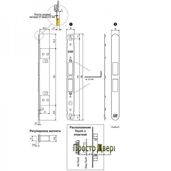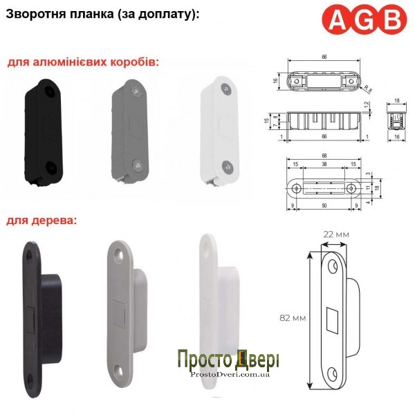 Для работы механизма дополнительно нужны накладка на лицевую панель и ответная планка, которая предлагается в двух вариантах - под деревянные и алюминиевые короба.